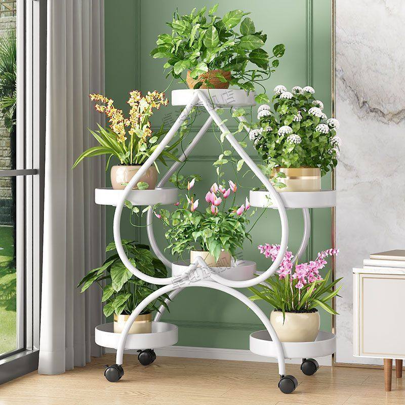 多层铁艺带轮花架可移动花盆架绿萝架花架阳台花架置物架