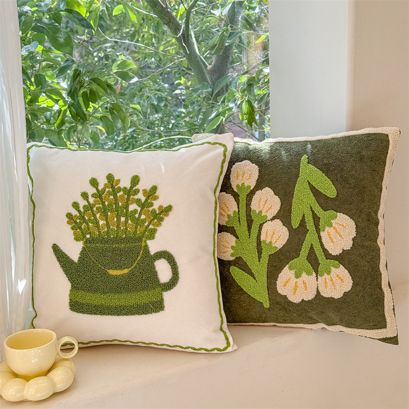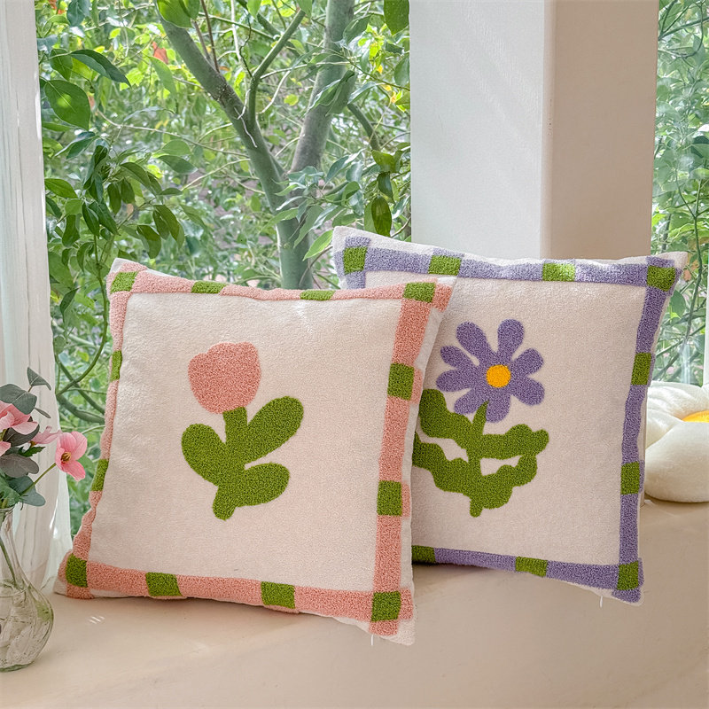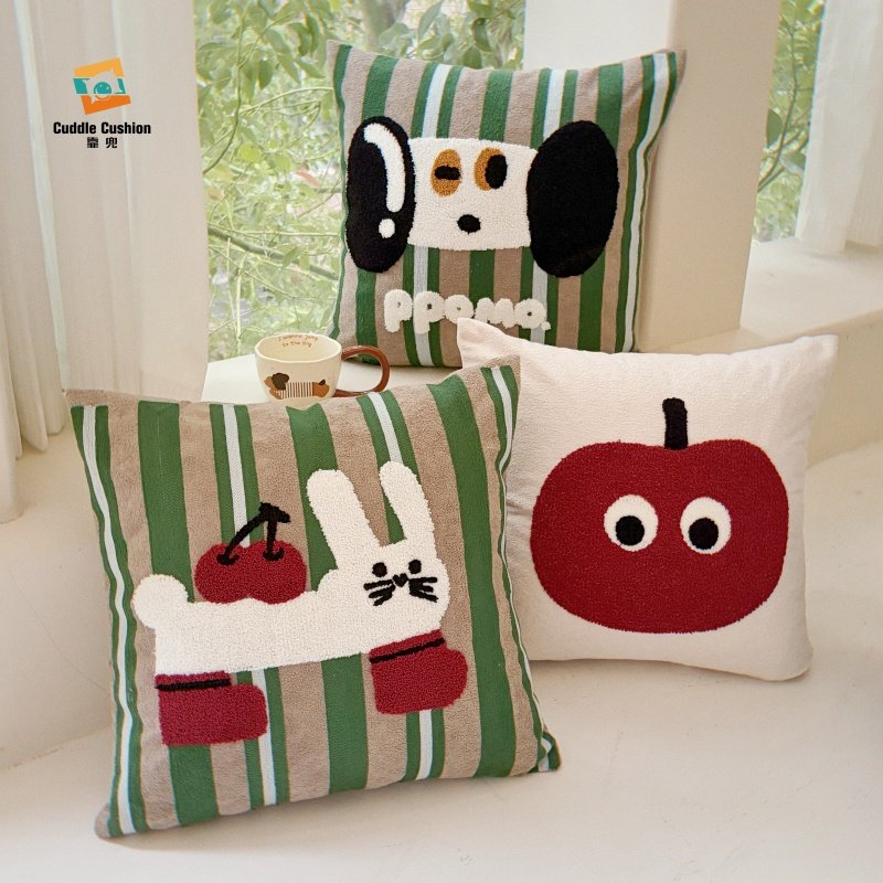 多巴胺卡通毛巾绣抱枕套抱枕靠垫腰枕靠背客厅沙发软装方形高级感