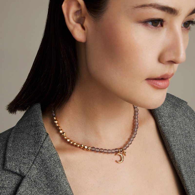 Fellala/翡拉拉「满月」系列原创设计灰玛瑙项链百搭时尚颈链