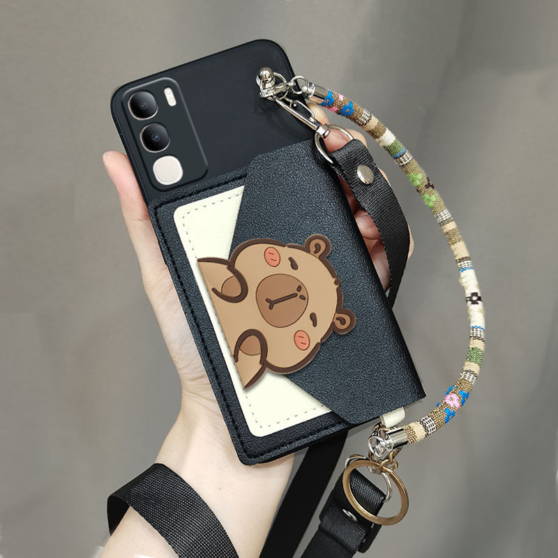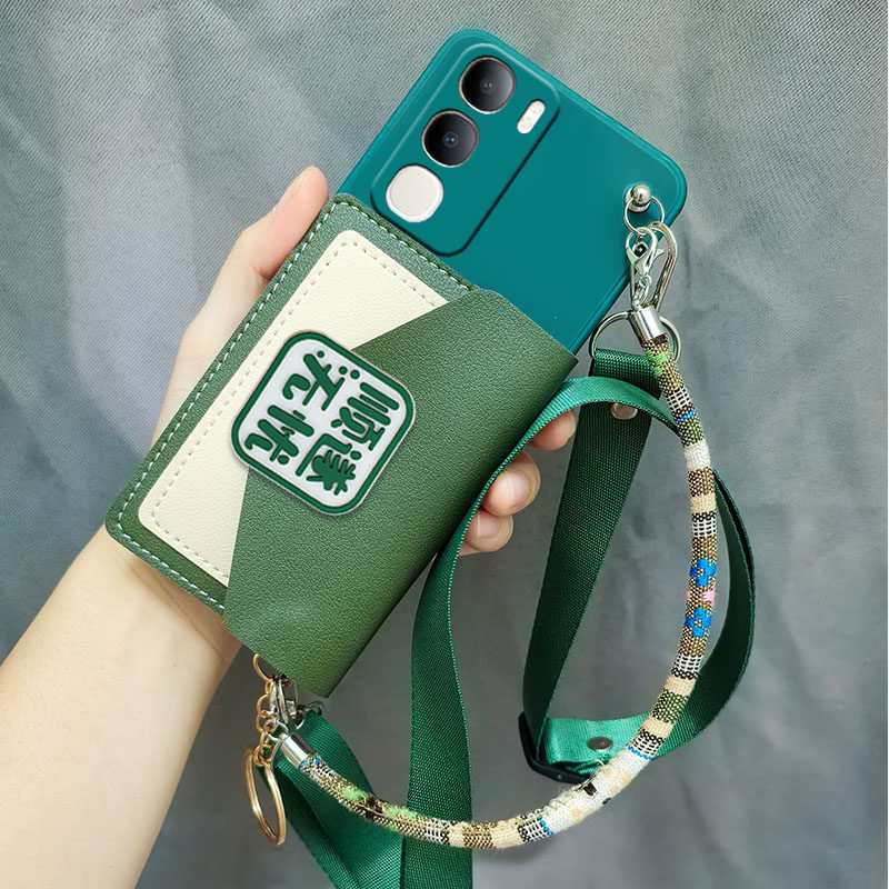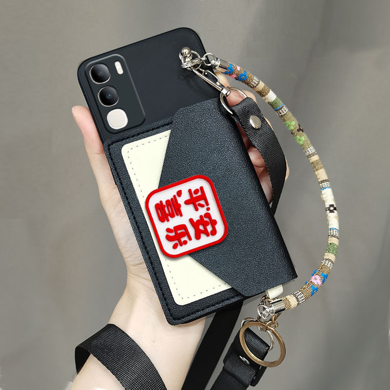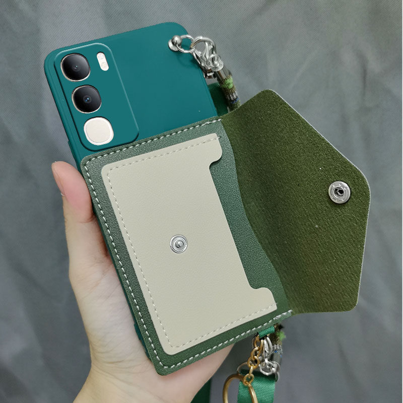 适用vivo y50 5G手机壳零钱卡包V2443A套斜挎零钱包新款卡包外壳背带钱包软壳软外壳挂脖绳软斜挎