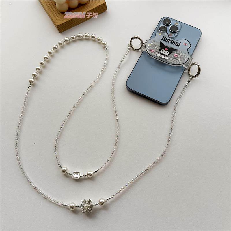 设计师款手机挂绳女高端合金雪花串珠链条斜跨可背带挂链网红爆款挂脖手机链手工diy包包链条ccd钥匙绳防丢绳