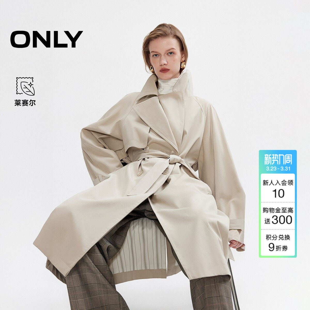 ONLY2026春季新款莱赛尔不对称双层领松弛插肩廓形长袖风衣外套女