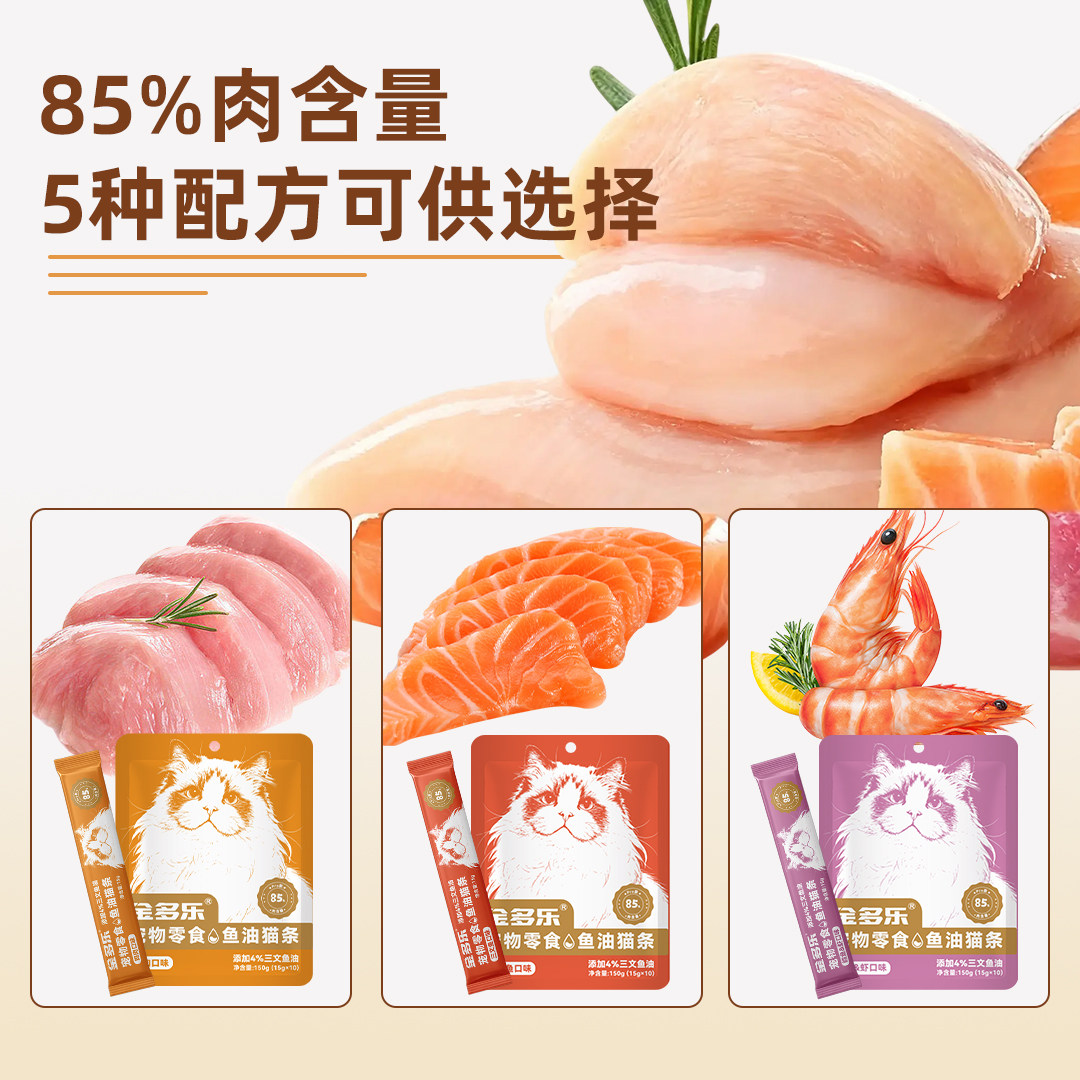 金多乐猫条猫咪零食官方正品小幼猫罐头营养鱼油试吃选100支整箱