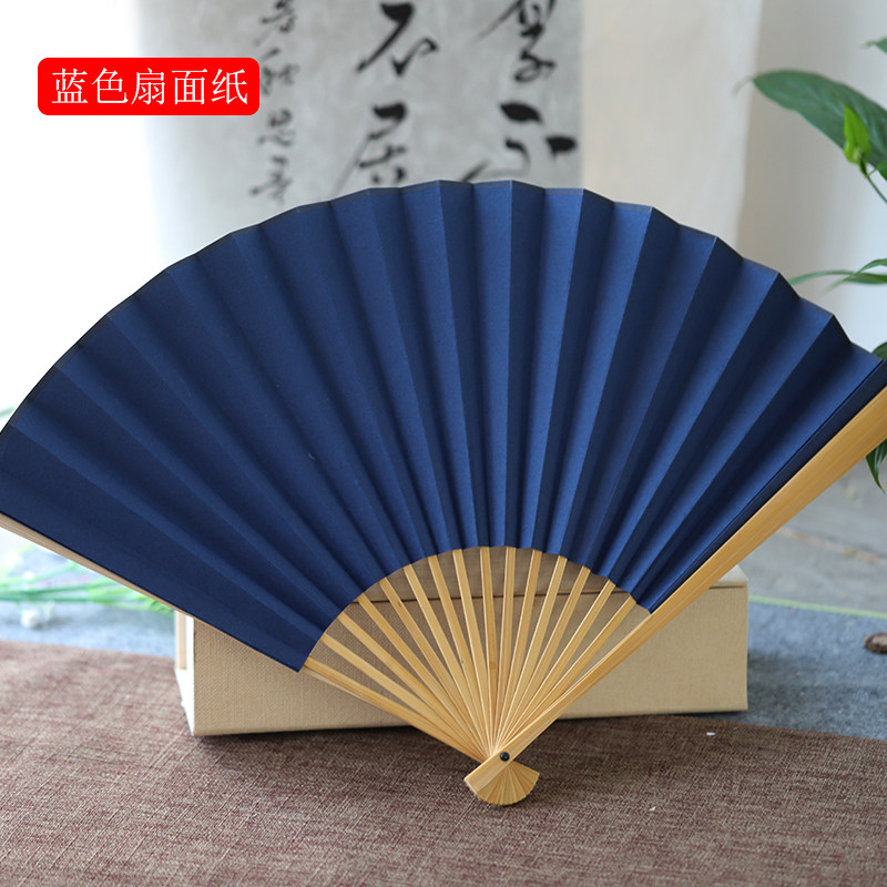 同和纸庄 空白黑色蓝色宣纸玉z竹折扇文玩扇子9寸空白玉竹折扇