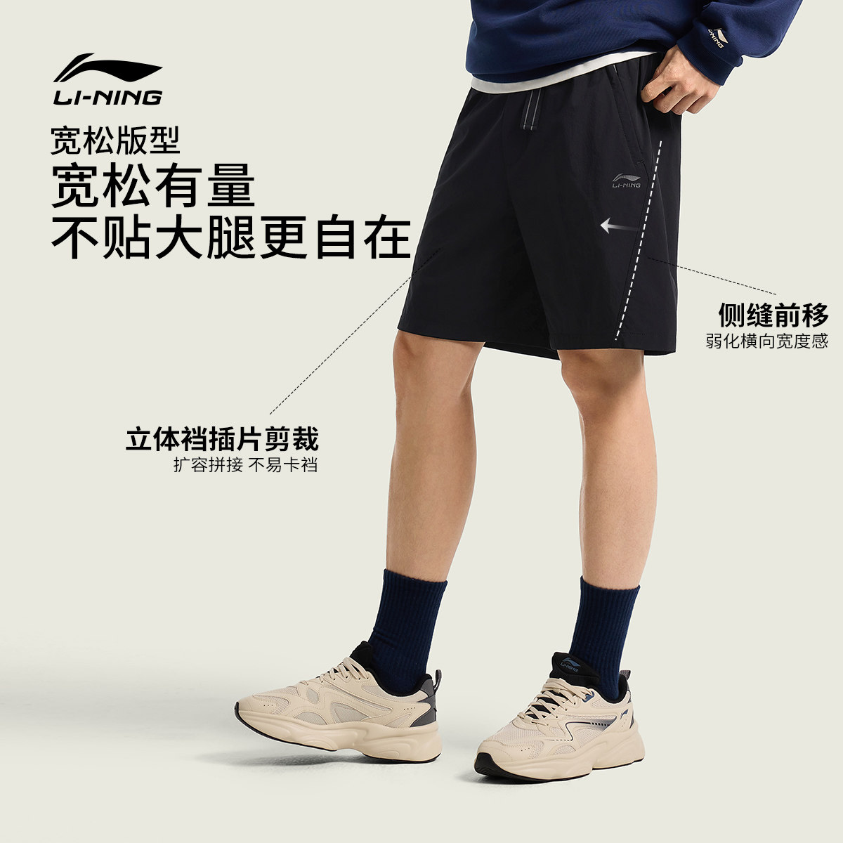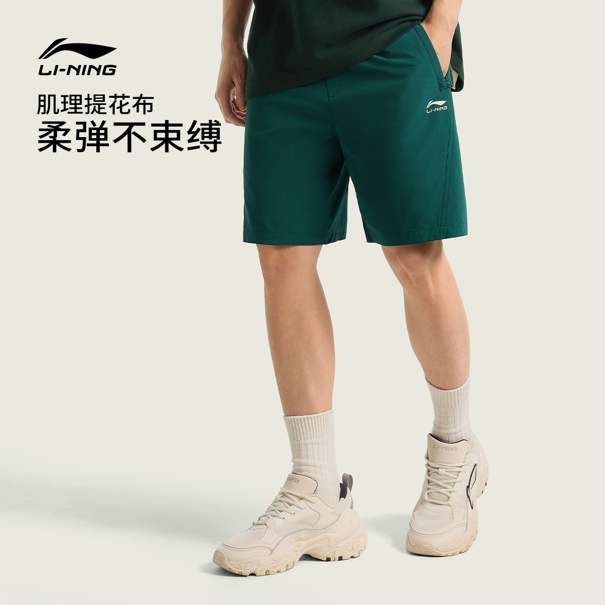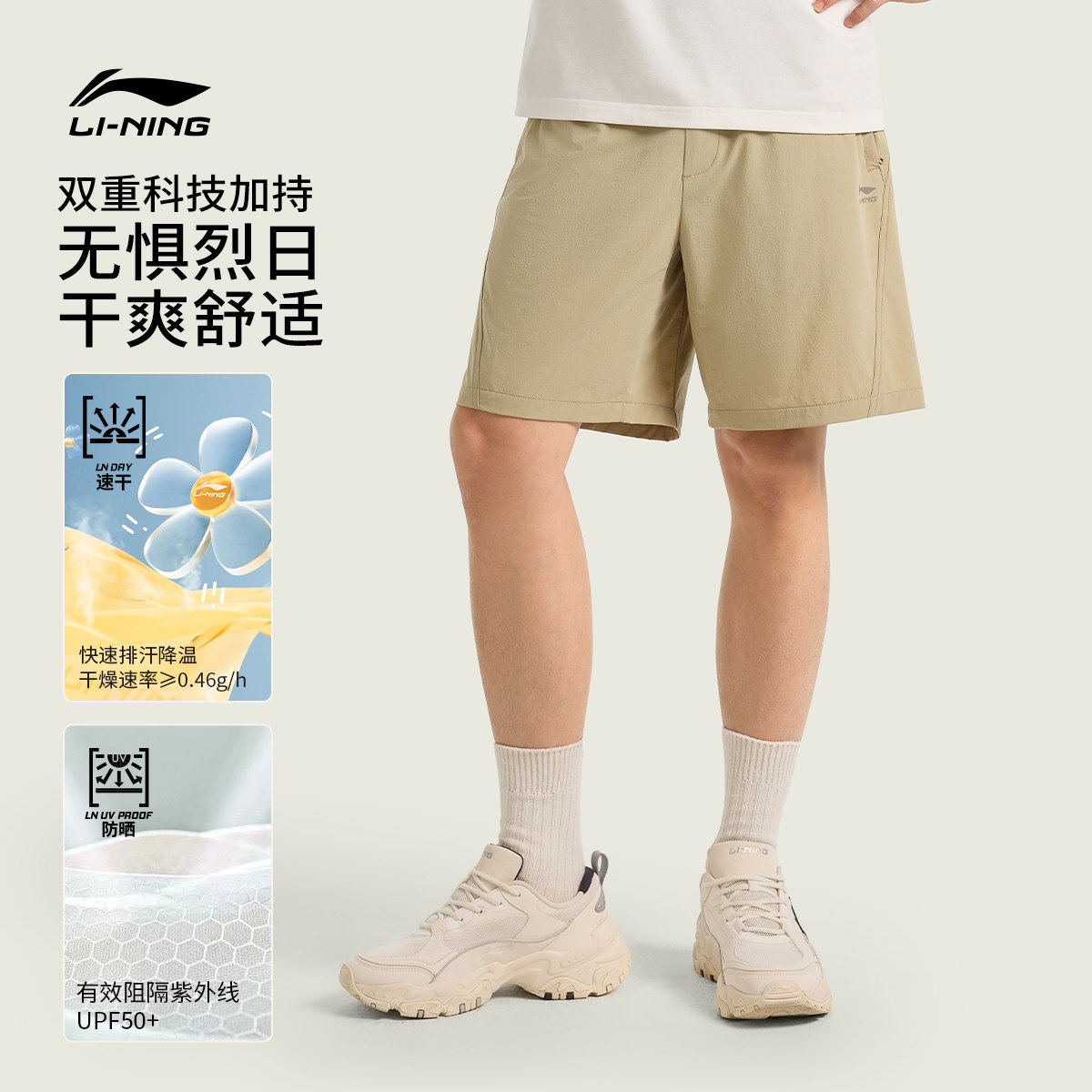 李宁运动短裤男新款夏季速干短裤休闲卡其色短裤防晒弹力运动裤