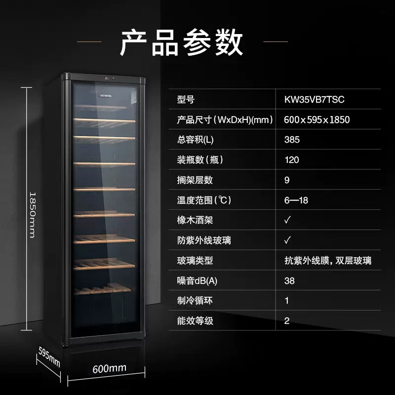西门子120支装红酒柜专业冷藏智能恒温橡木酒架葡萄酒柜B7TSC