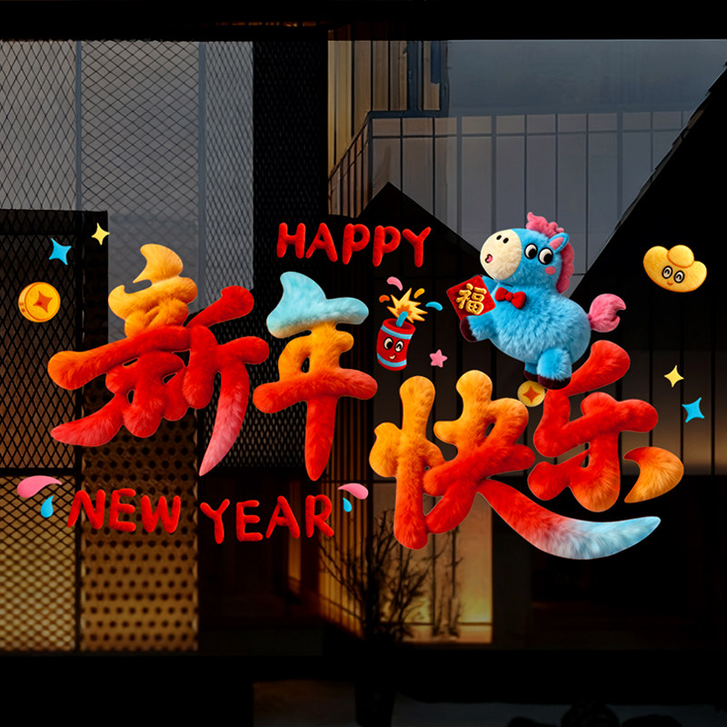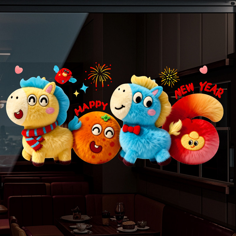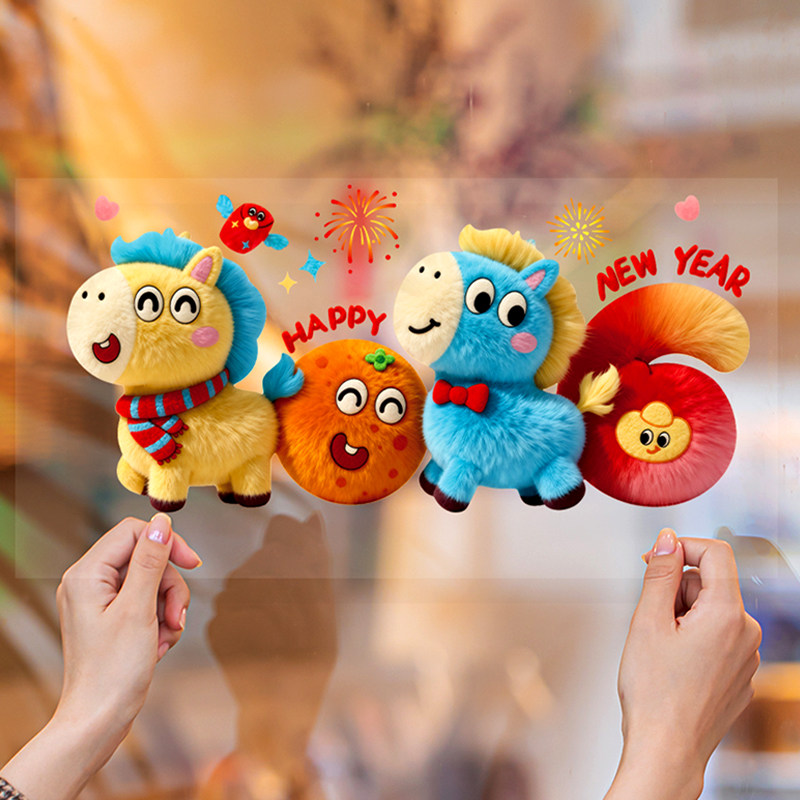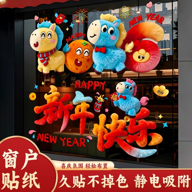新年装饰玻璃静电贴纸2026新款创意春节场景布置玻璃静电贴装饰品