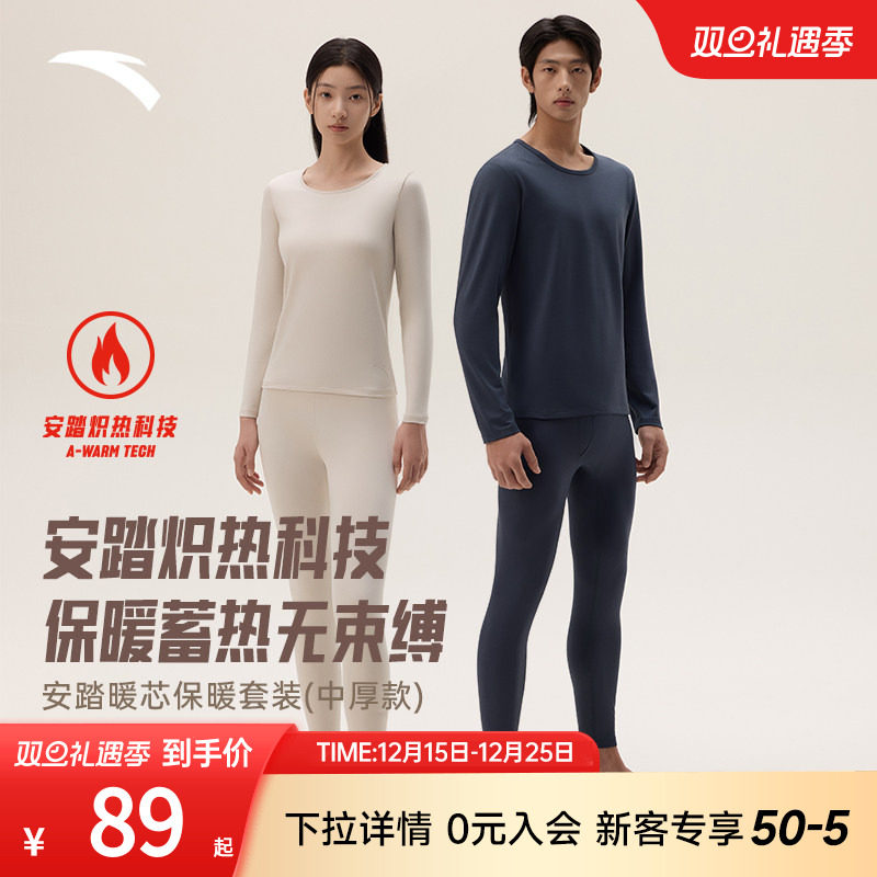 安踏加绒保暖内衣套装男士女士加绒外穿秋衣秋裤套装无痕打底衫
