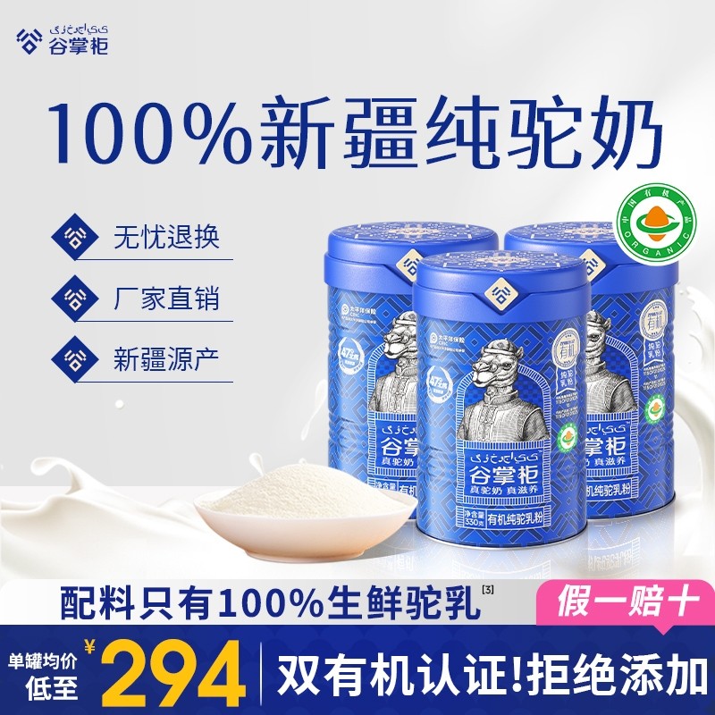 谷掌柜有机纯骆驼奶粉新疆正宗全脂驼乳粉官方旗舰店正品高钙黄金