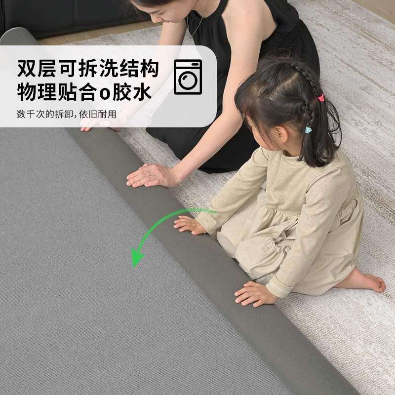 可拆洗奶油风客厅地毯新款双层圈绒可机洗轻奢高级感简约卧室地垫