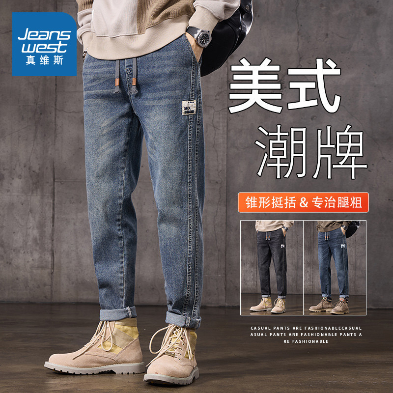 森柔牛仔森马牛仔裤男小脚裤复古水洗长裤夏季裤子直筒显高显腿长