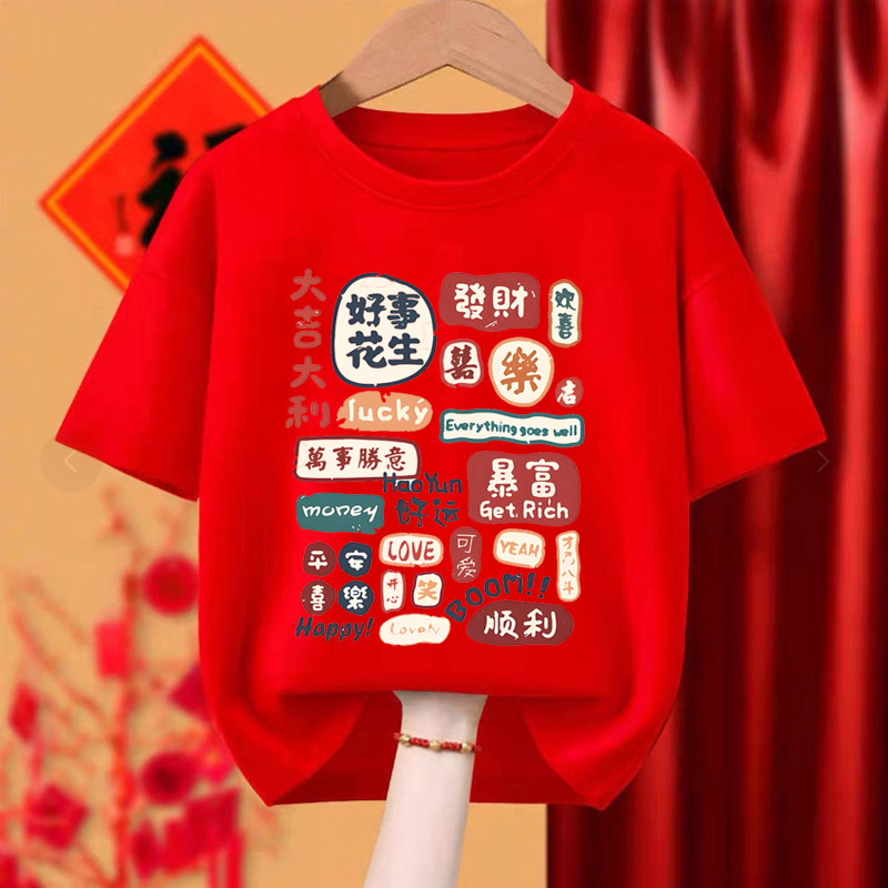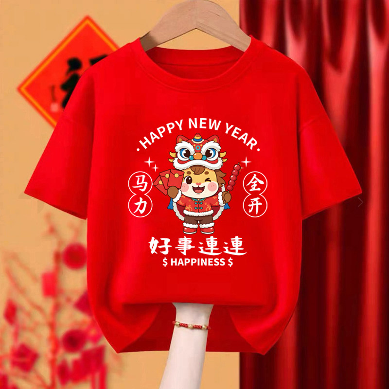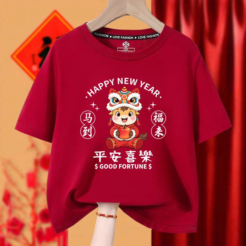 2026马年本命年衣服男女t恤酒红色纯棉新年一家人拍照短袖亲子装