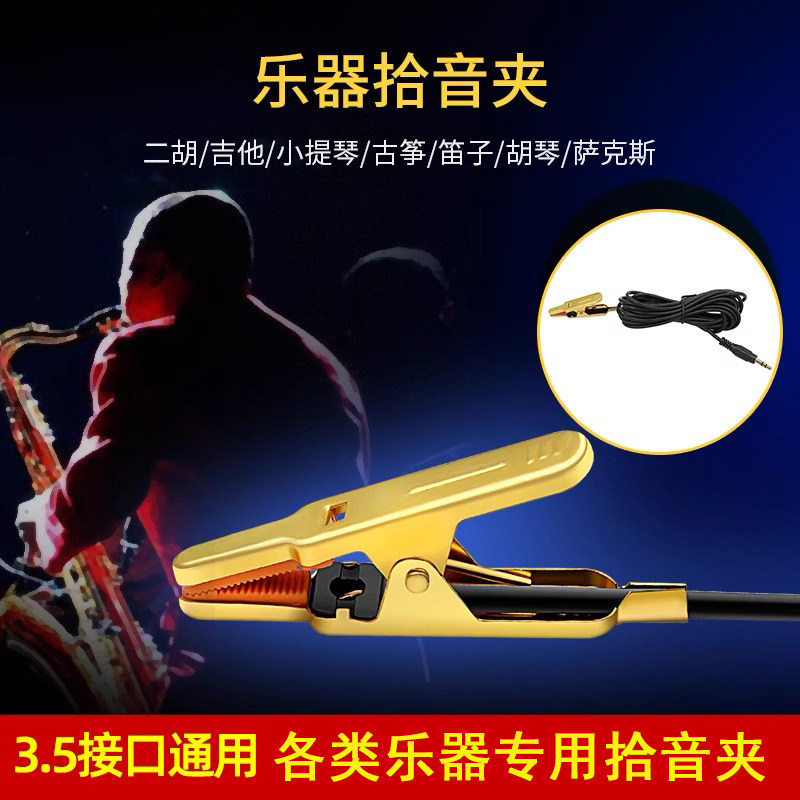 二胡乐器通用拾音器萨克斯专用尖嘴夹吉他夹麦3.5接口爱课扩音器