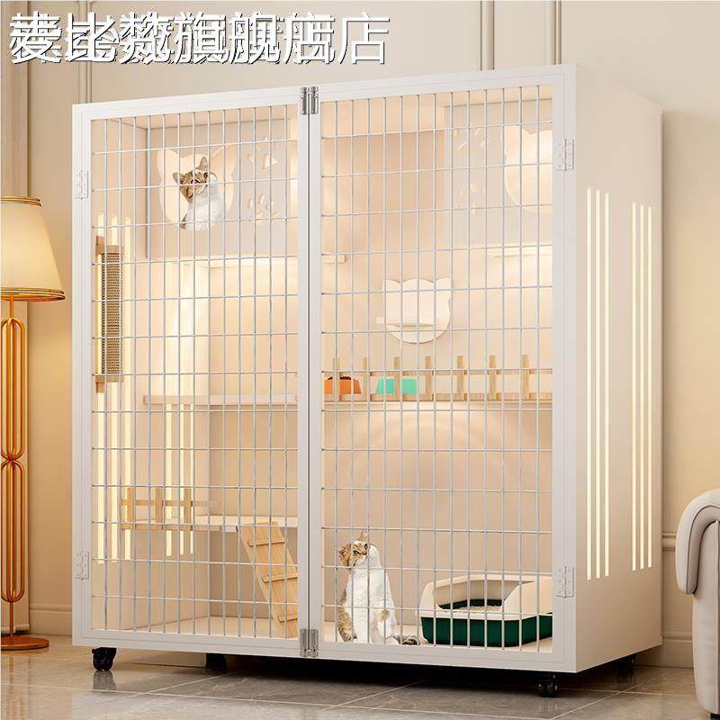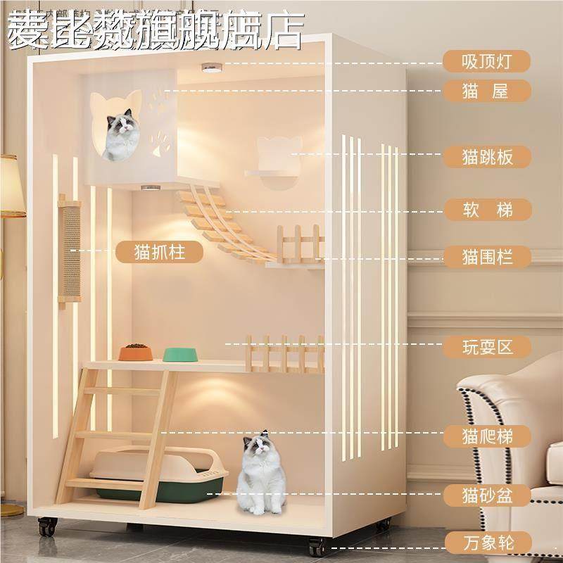 麦比梵猫别墅家用豪华猫屋室内全景猫 柜 猫 窝爬 架 一体猫咪房子透气猫笼子床笠拉车