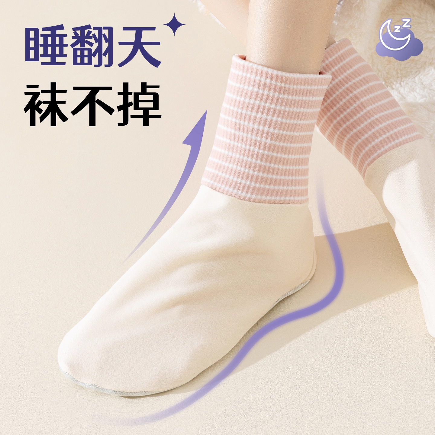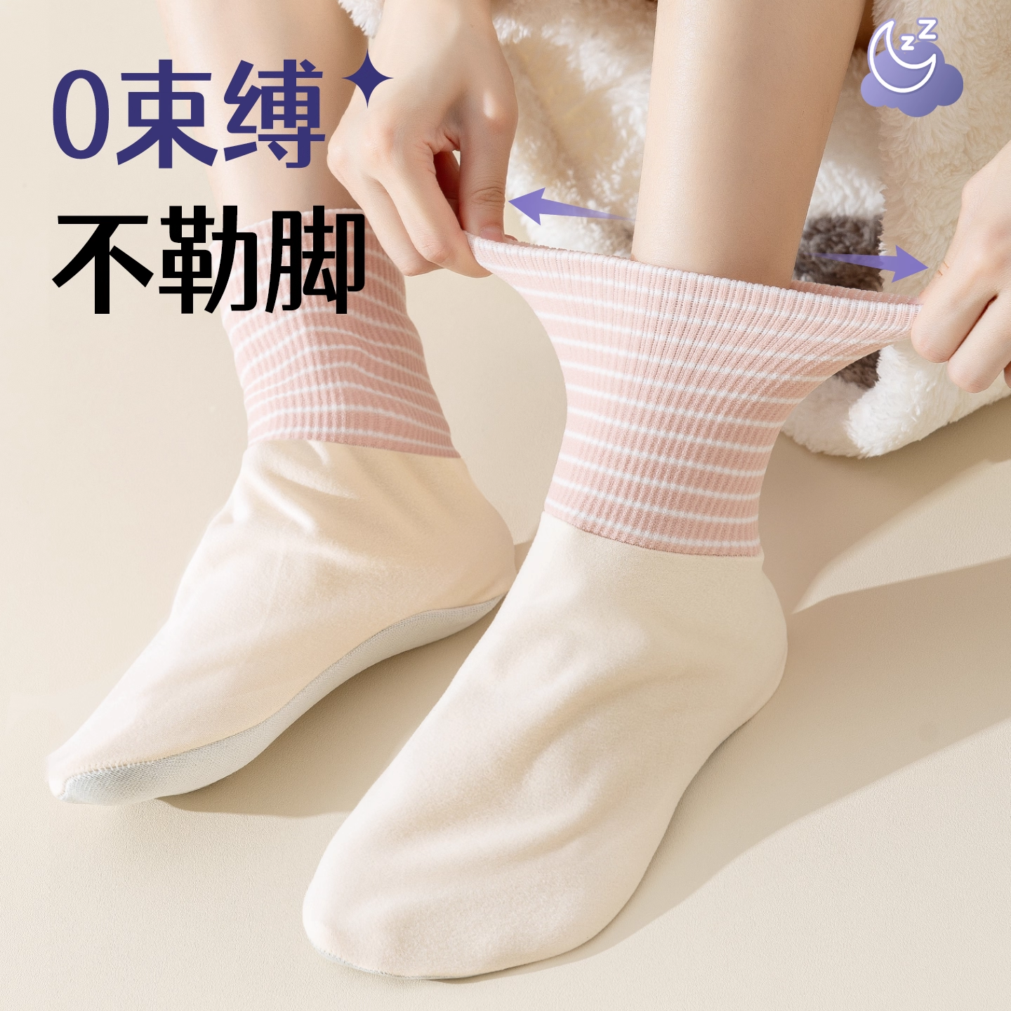 睡眠袜加绒加厚松口孕妇月子袜四季暖脚套保暖袜套羊毛不勒脚粉色