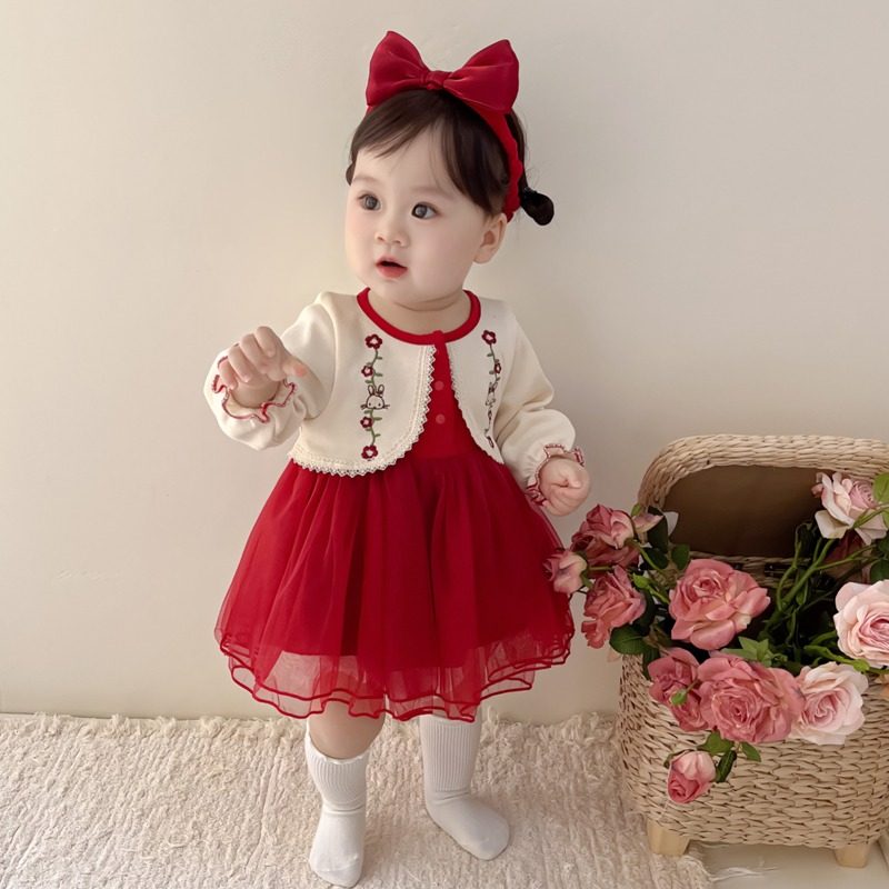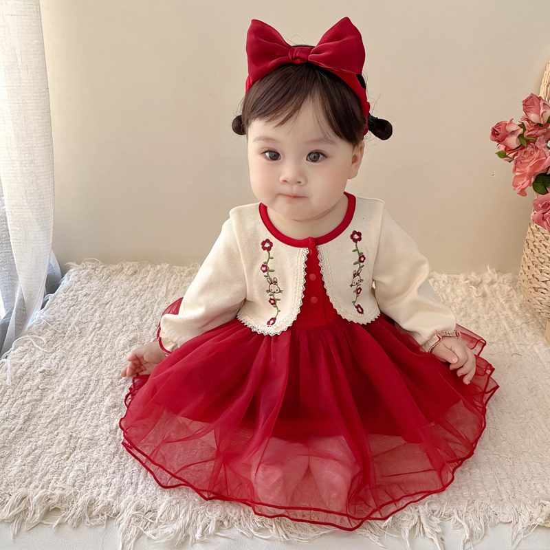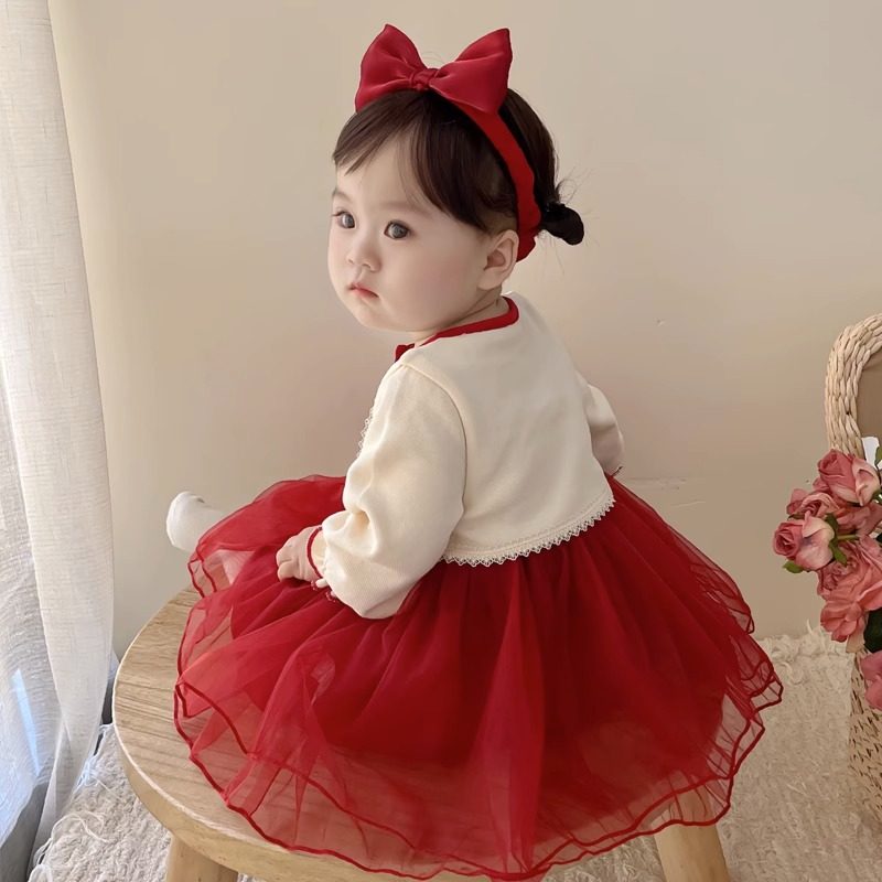 女宝宝周岁礼服秋冬女童公主裙婴儿衣服一岁抓周新年拜年服连衣裙