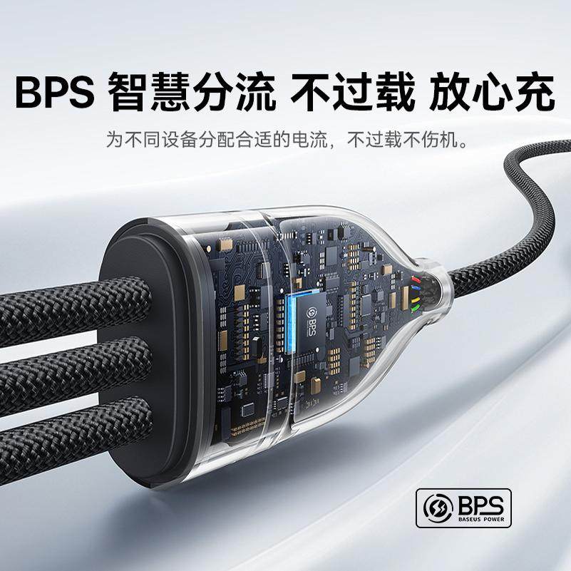 倍思数据线三合一充电线器66W手机快充一拖三6A适用苹果17华为安卓typec三头mate60Pro车载iPhone16多功能5A