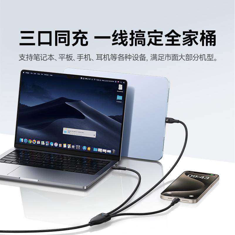 倍思适用苹果16e华为数据线三合一iPhone15充电线一拖三PD100W快充ctoc口车载双typec手机ipadair平板笔记本