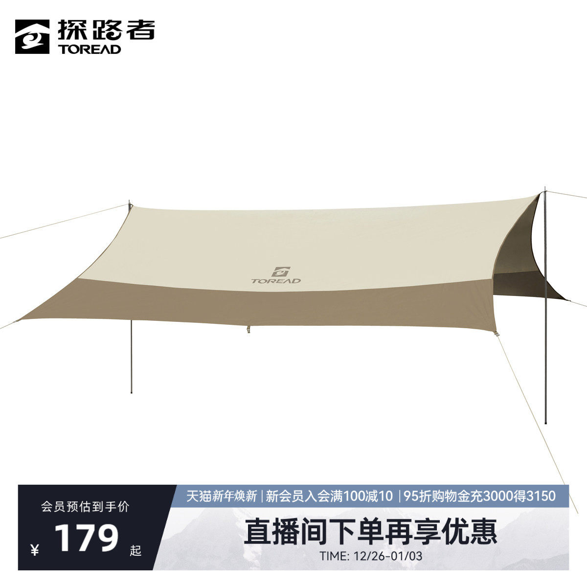 「天幔440」探路者天幕春夏户外露营野餐坚固耐用涂银六角幕布
