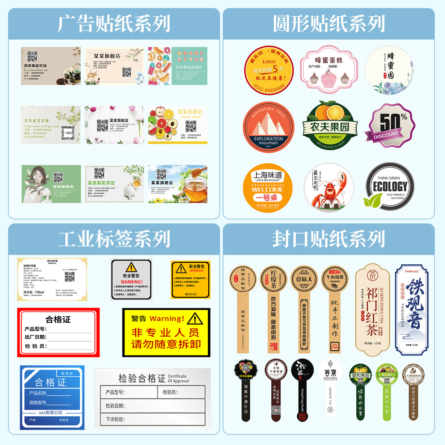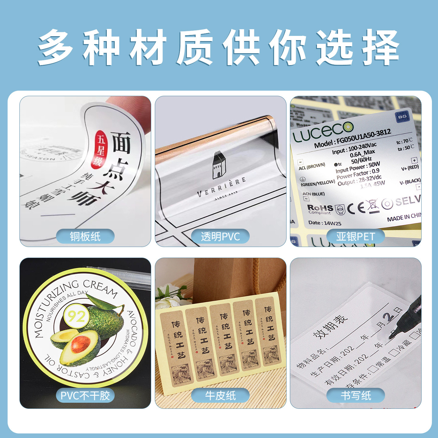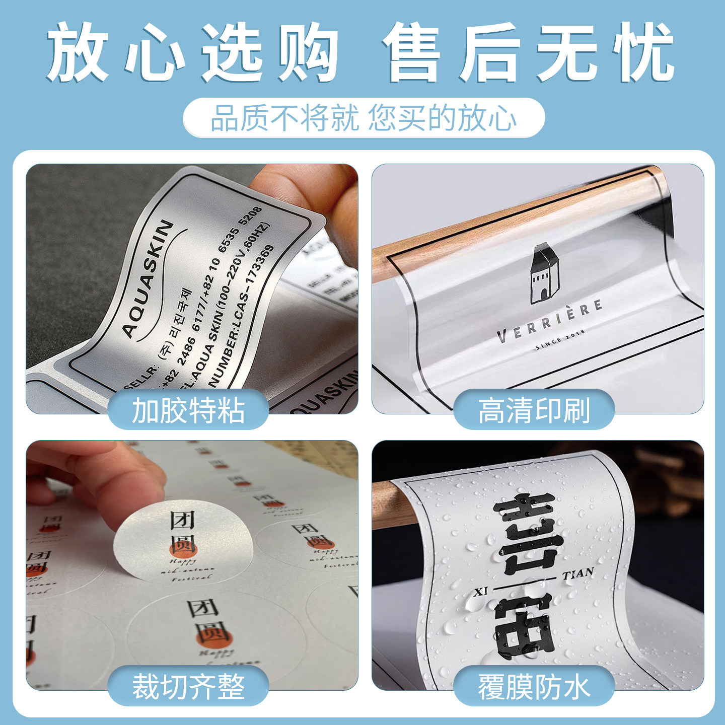 不干胶定做透明标签标贴商标Logo户外防水异形模切印刷a4卡通圆形特种纸定制铜版纸牛皮纸二维码PVC彩色贴纸