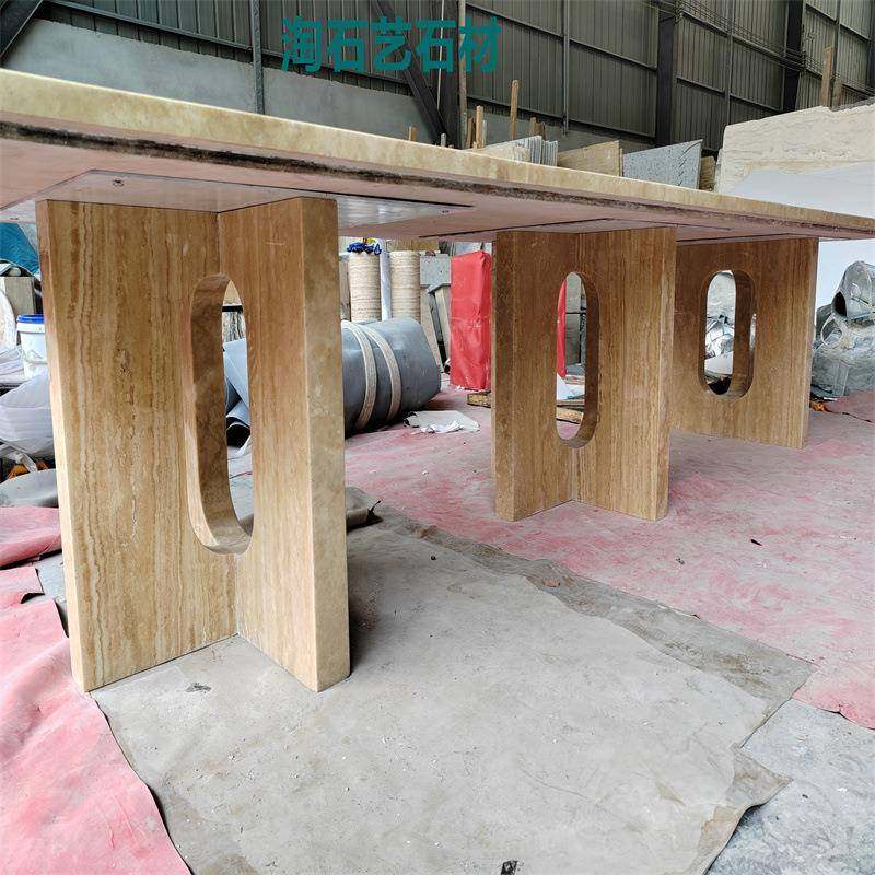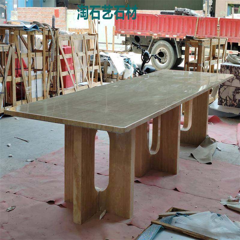 时尚洞石桌天然大理石石材餐桌设计定装异型家装别墅天然大理石艺