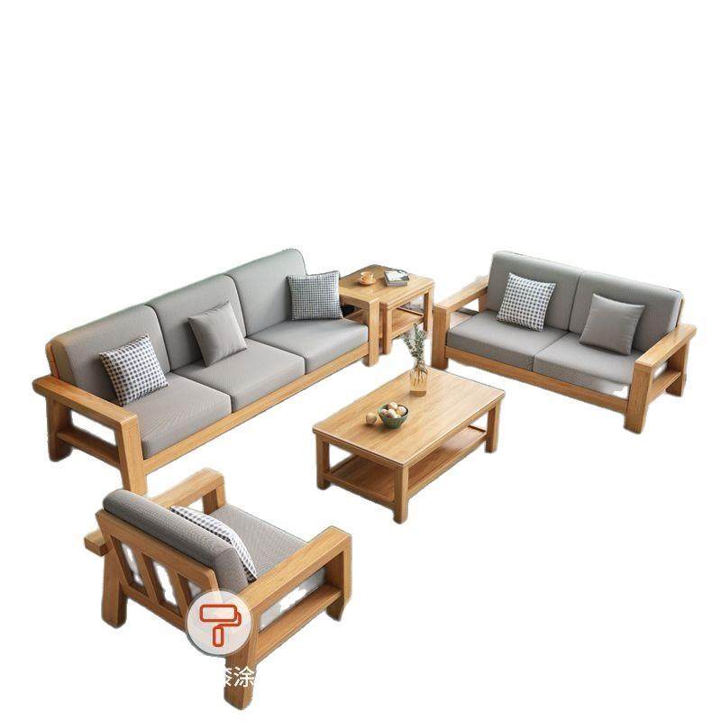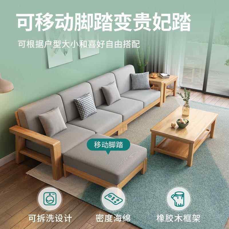 橡胶木家具全实木沙发组合客厅简约现代沙发床两用小户型木头沙发
