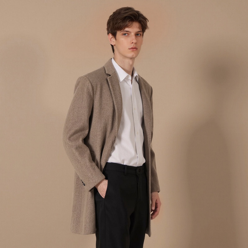 海上公路绵羊毛双面呢大衣男士中长款一粒扣简约休闲秋冬新款外套