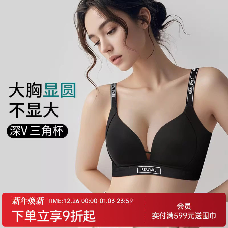 润微提拉内衣女大胸显小无痕防下垂收副乳胸罩爆款隐形粉底液文胸