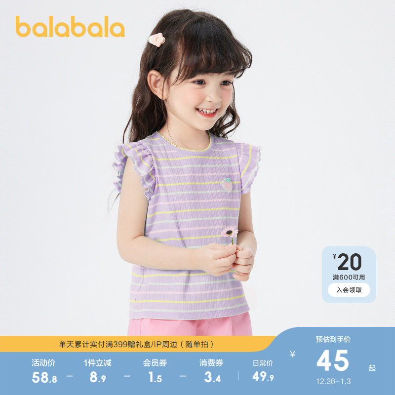 巴拉巴拉童装女童短袖t恤宝宝上衣儿童2025新款夏装小童条纹衣服