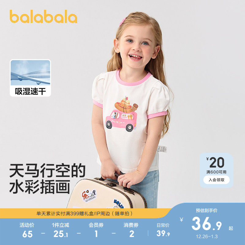 巴拉巴拉童装女童短袖T恤宝宝儿童纯棉上衣2025新款春夏装泡泡袖