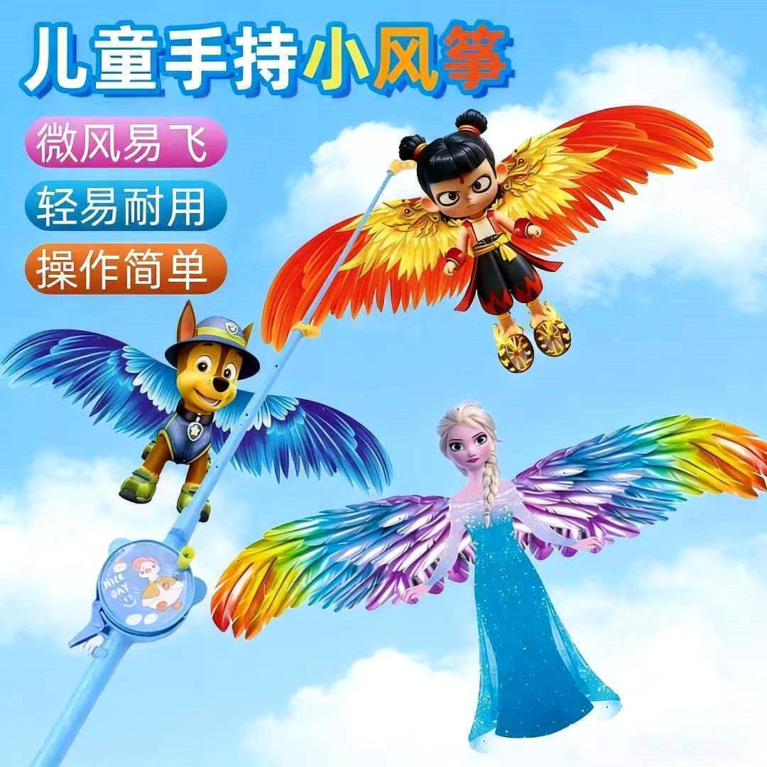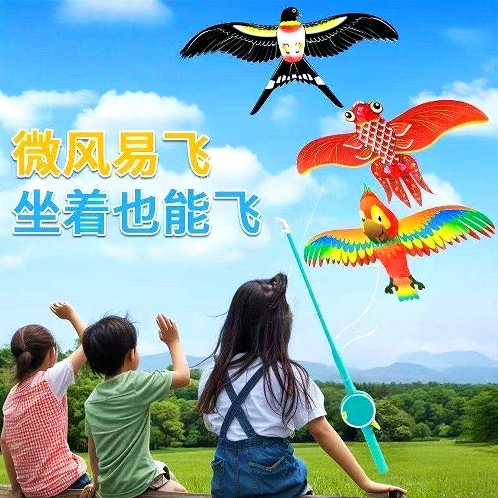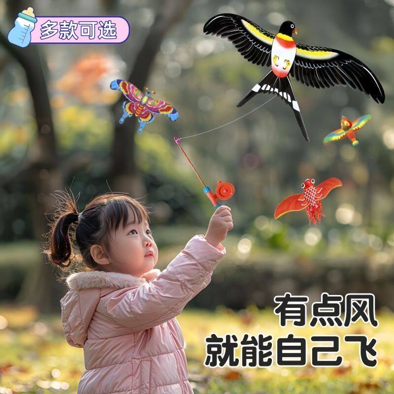 儿童手持小风筝2026新款仿真动态长尾鱼竿风筝户外玩具遛娃神器