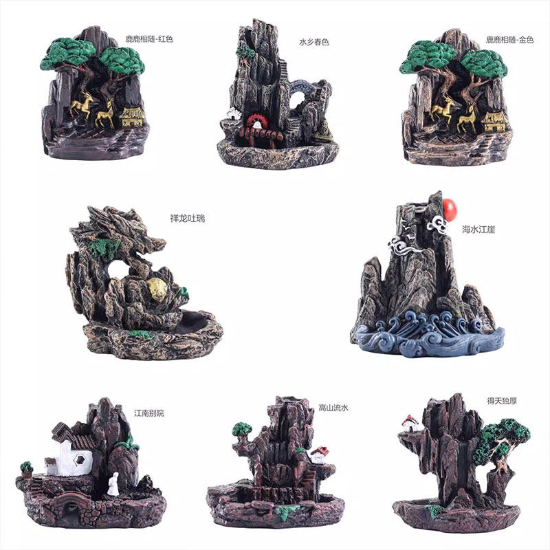 多款创意家居倒流香炉高山流水流云香炉香薰炉摆件树脂香炉香道品