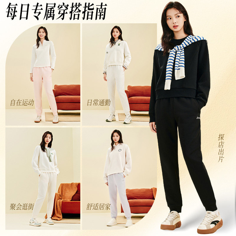 安踏奶芙裤丨运动长裤女裤冬季加绒黑色针织裤休闲跑步收口卫裤子