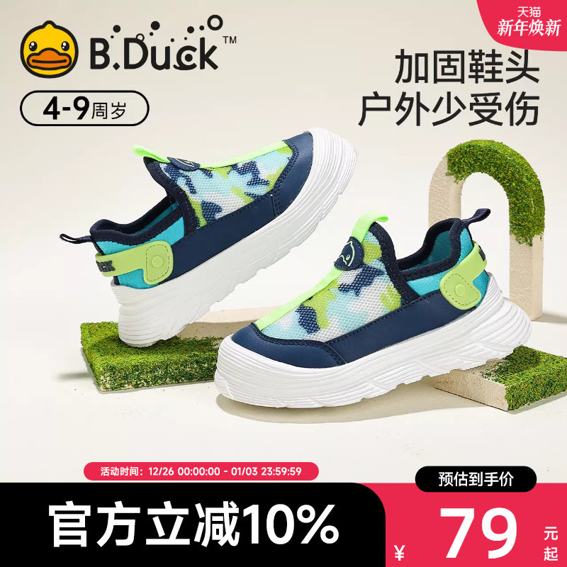 BDuck小黄鸭女童休闲鞋室内一脚蹬2025春季新款男孩透气轻便儿童