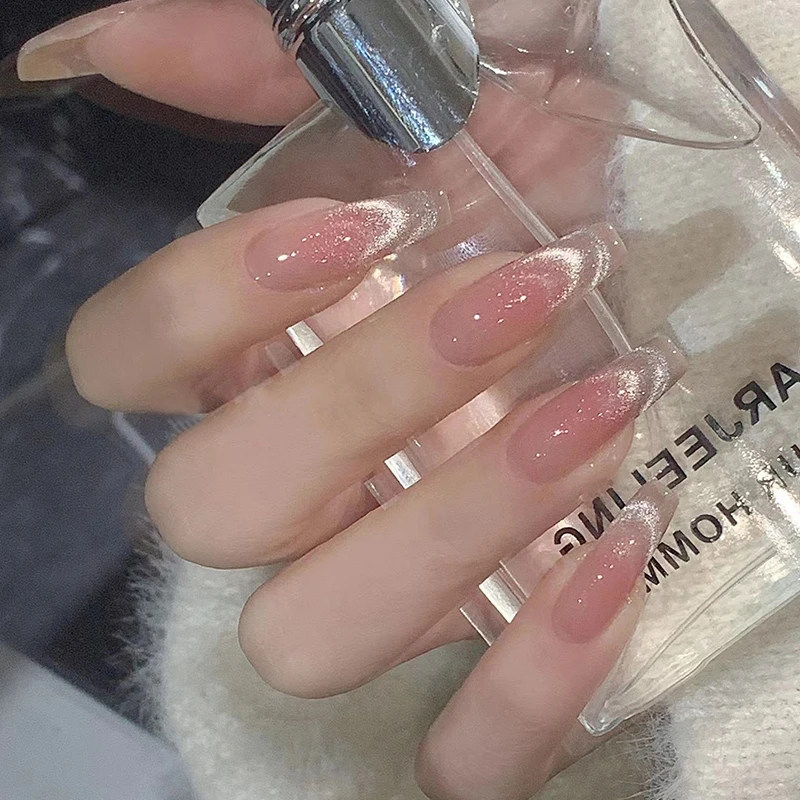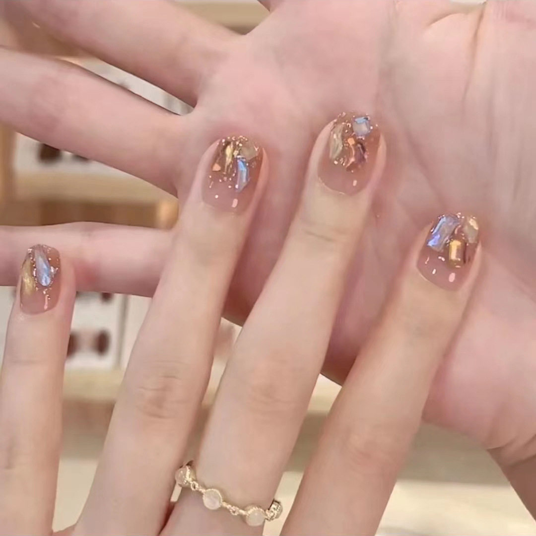 美甲穿戴甲秋冬新款中长款气质显白碎钻爆闪温柔指甲纯欲美甲贴片