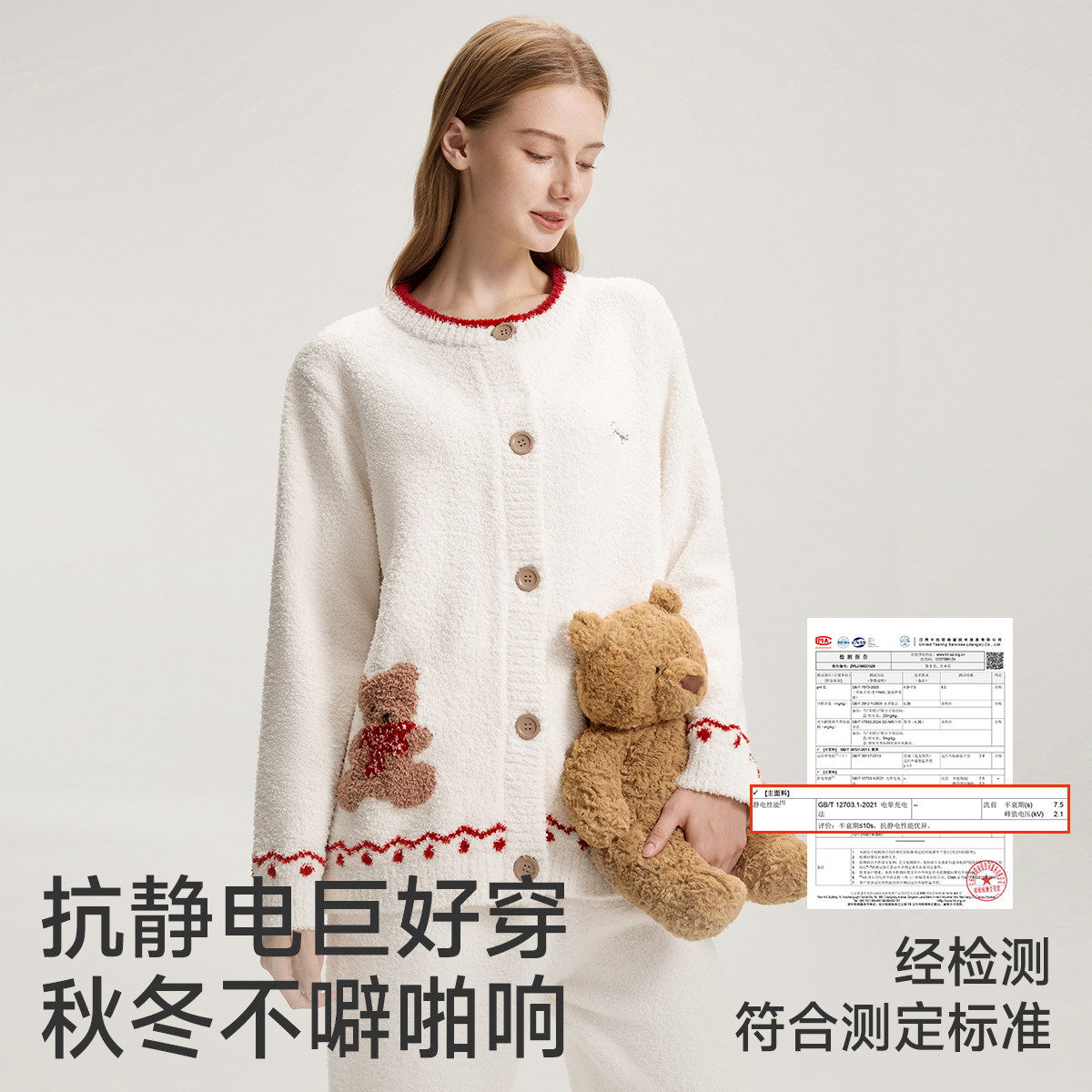 婧麒半边绒月子服孕妇睡衣冬外穿产后哺乳喂奶产妇加厚家居服套装