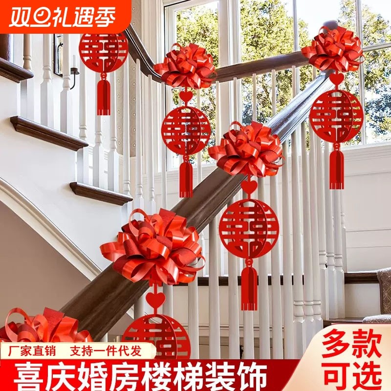 楼梯装饰结婚婚庆拉花彩带婚房布置套装婚礼扶手用品大全爱心立体