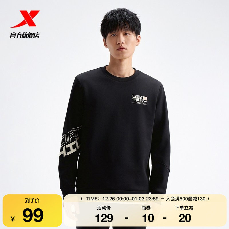 特步圆领卫衣男款2025秋季新款时尚潮流内搭长袖运动套头衫男装