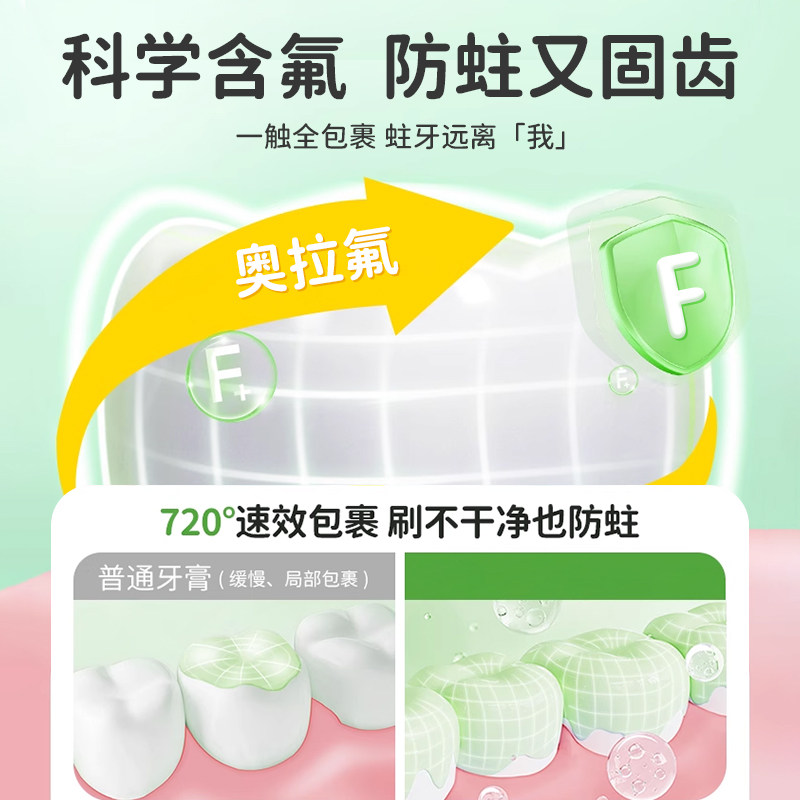 呵护儿童牙膏含氟防蛀奥拉氟牙膏水果味1-6-12岁中大童换牙期清洁