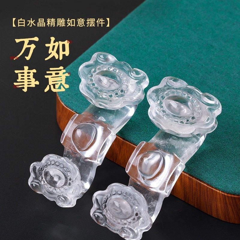 天然白水晶如意高透优质好运寓意万事如意把玩乔迁开业礼物摆件
