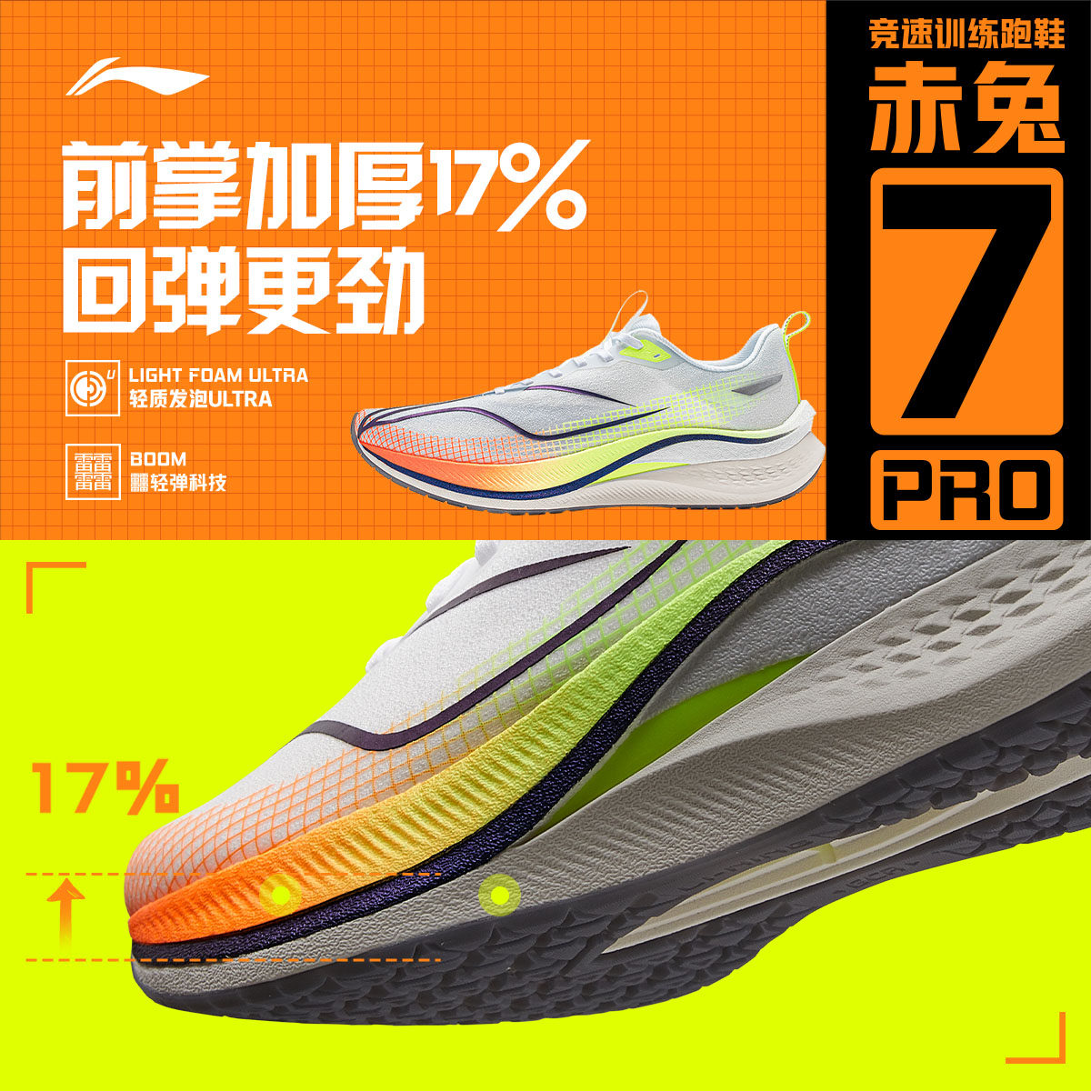 李宁赤兔7 PRO |跑步鞋男鞋减震回弹训练鞋子新款跑鞋低帮运动鞋