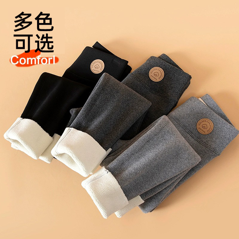 女童打底裤秋冬加绒一体高腰2024新款女宝外穿加厚羊羔绒保暖秋裤