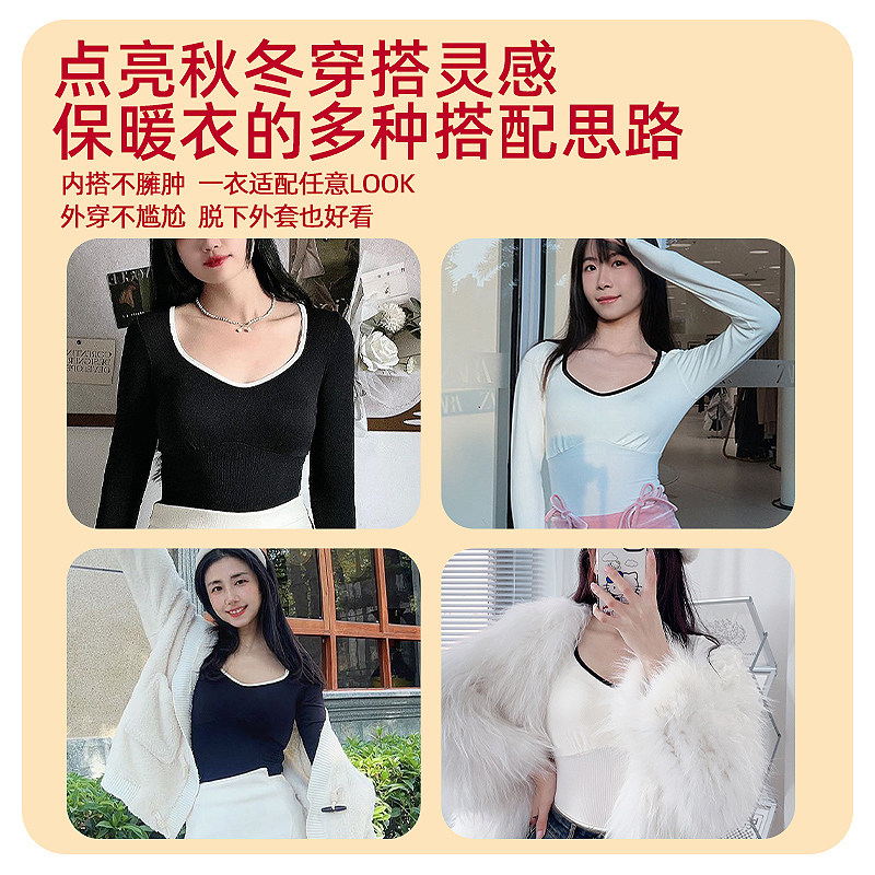 【张雨绮同款】曲线主义黑巧保暖内衣女士秋冬背心带胸垫内搭打底