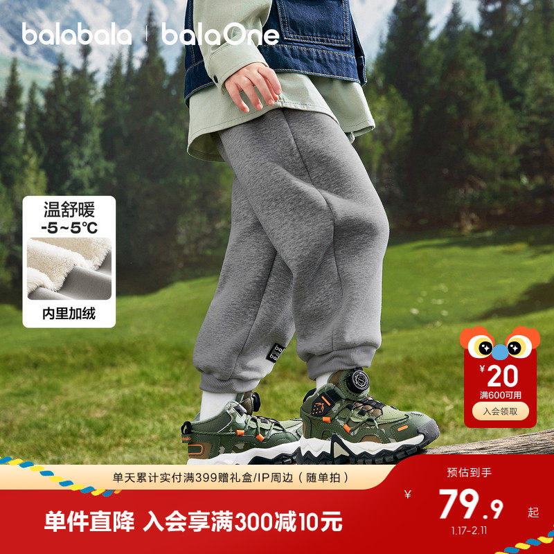 巴拉巴拉童装儿童加绒裤子男童女童2025冬装新款一体绒运动长裤潮