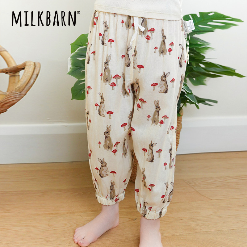 Milkbarn2025春夏新品儿童裤子男女童薄款防蚊裤休闲长裤宝宝童装