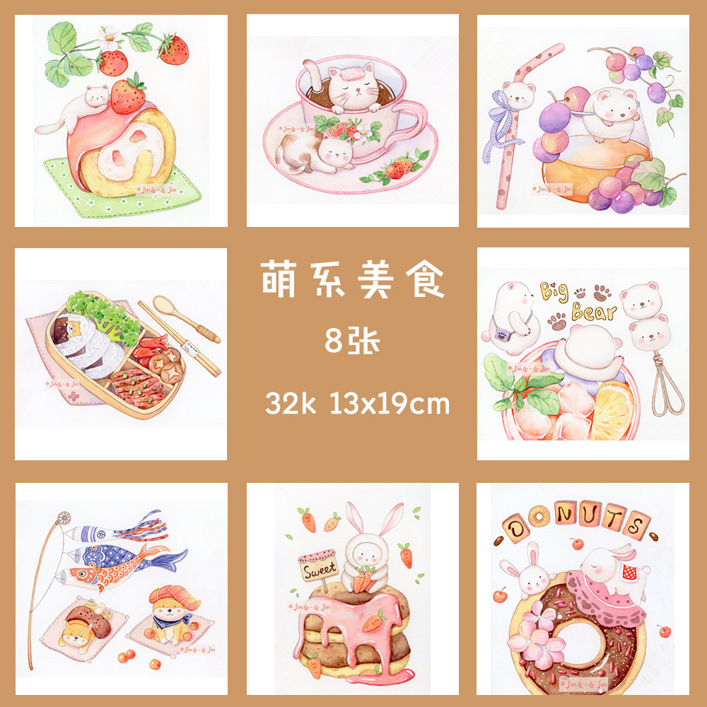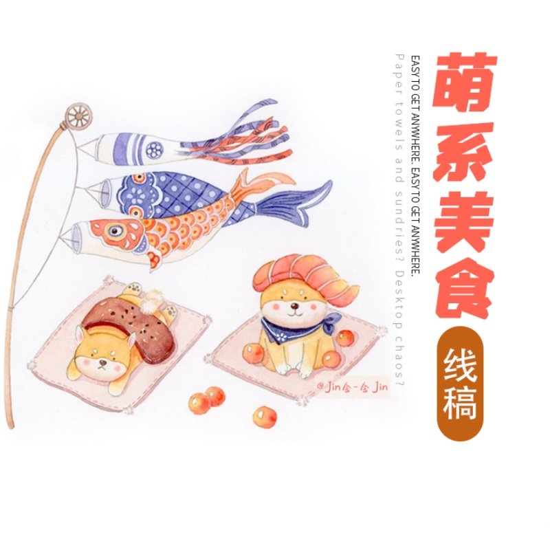 萌系美食钢笔淡彩线稿新手入门材料水彩线稿上色图金金手绘美食类