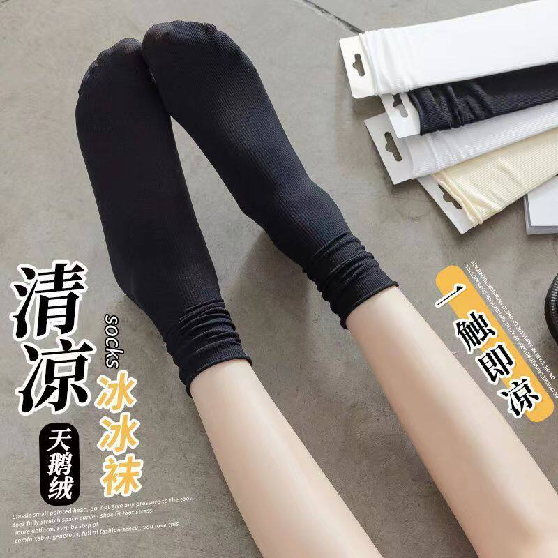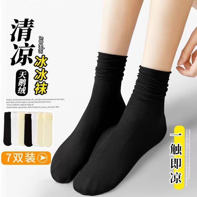 堆堆袜冰冰袜子女春秋夏天无骨冰丝长袜百搭款白色薄款纯色中筒袜