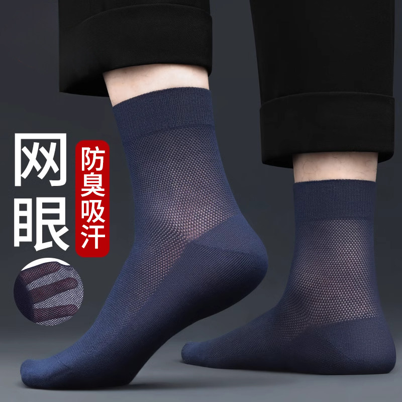 黑色袜子男士夏薄款纯棉防臭中筒袜夏天吸汗透气网眼短袜运动棉袜