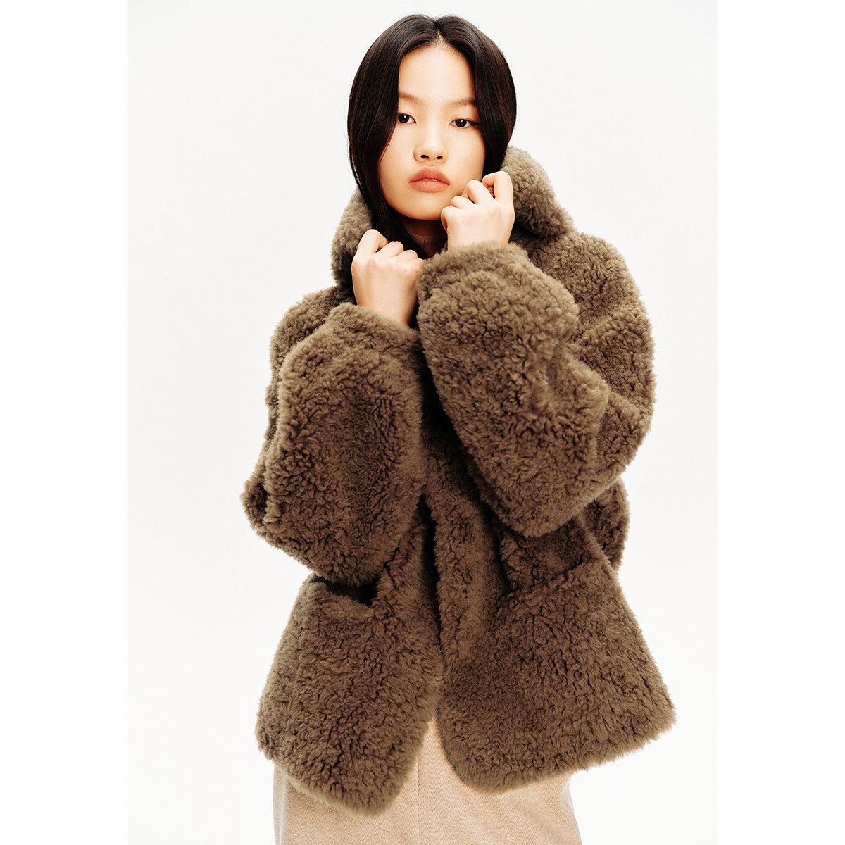 PSALTER诗篇巴恩风短款宽松连帽绵羊毛皮草外套女冬季款