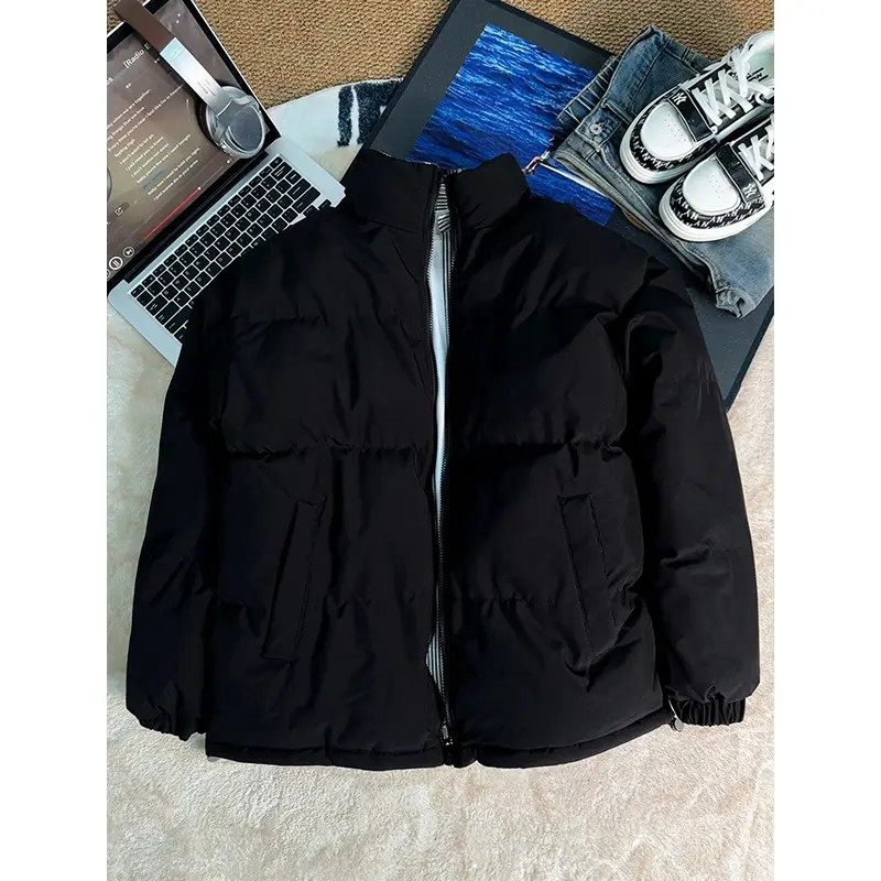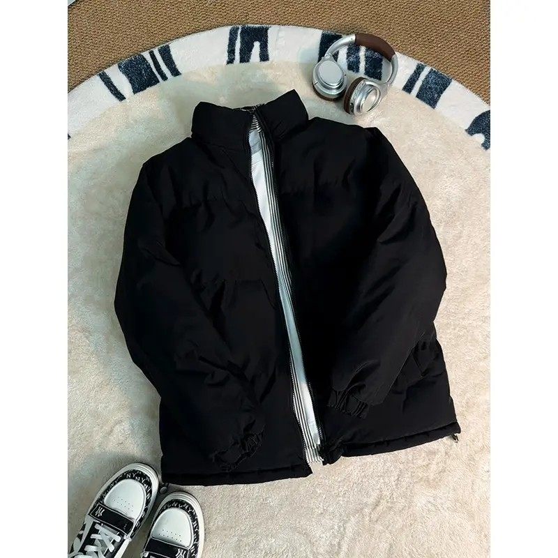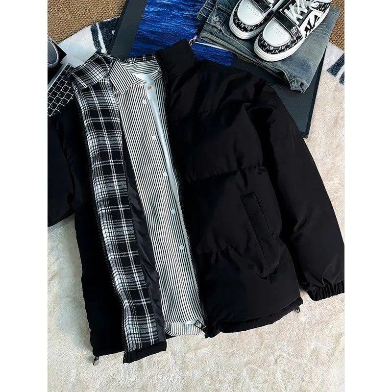 cleanfit黑色格子拼接夹克棉服男款冬季立领面包服运动棉衣外套